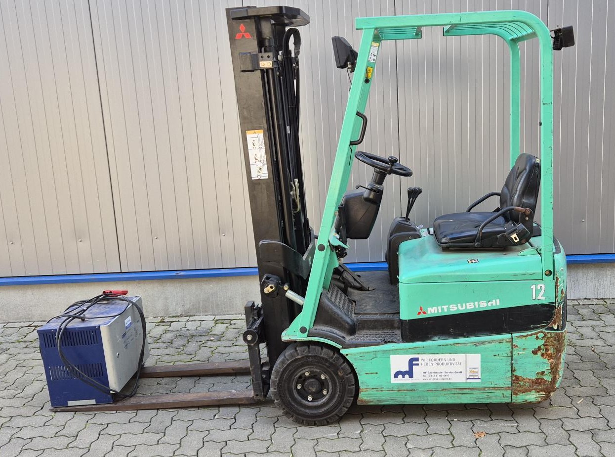 Hersteller: Mitsubishi Typ: FB12KRT Bauart: Elektro 3 Rad-Stapler Antriebsart: Elektro Tragkraft: 1250 kg Zustand: sehr gut |